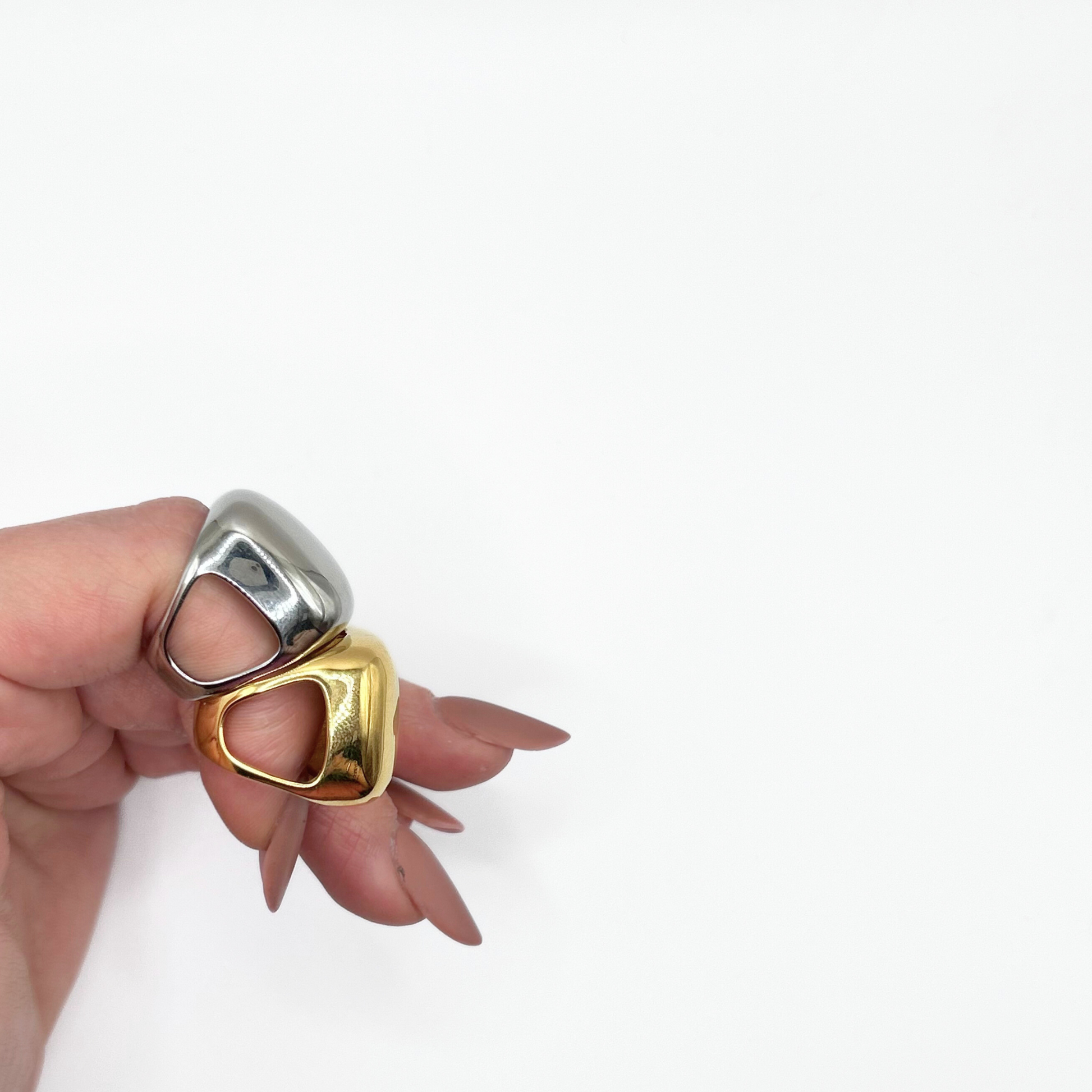 Un cubo, un’anima bold e zero compromessi: l’anello perfetto per chi ama lo stile deciso ma comodo.
