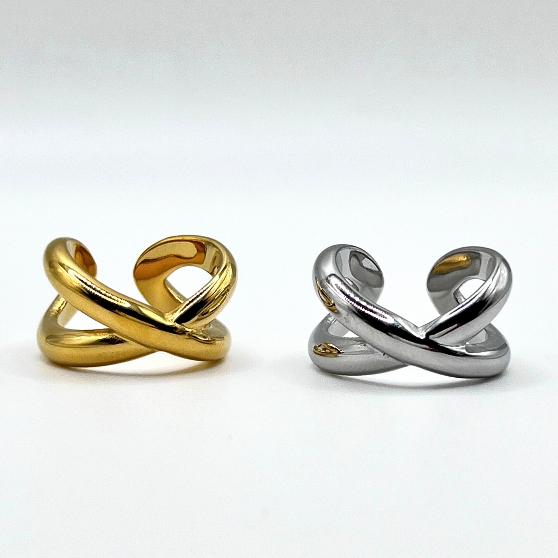 Anello CROSS, modello ad incrocio senza taglia, con misura regolabile.