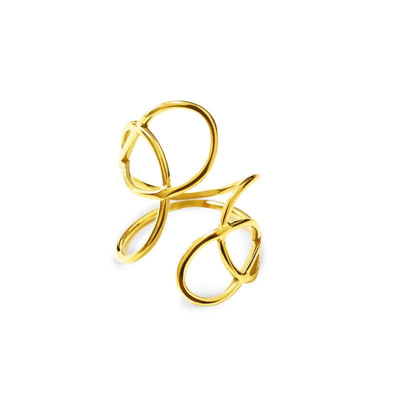 La doppia onda sottile si intreccia con eleganza intorno alle dita, per un effetto minimal ma d’impatto.
