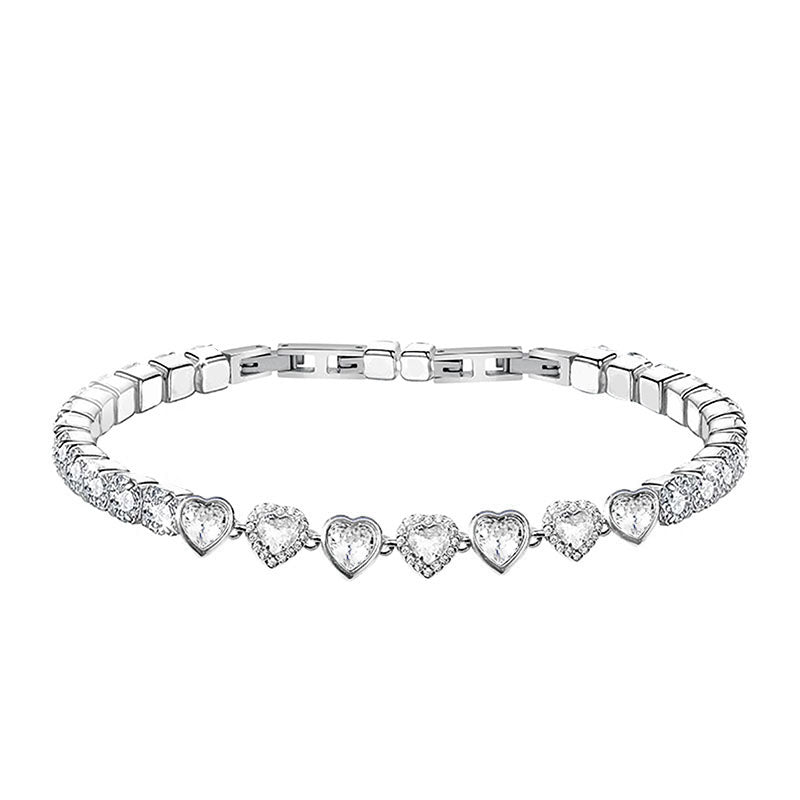 Il bracciale Amorè reinterpreta il classico tennis con una fila di cuori luminosi sul davanti: elegante, romantico e con la giusta dose di brillantezza per farsi notare in ogni occasione.