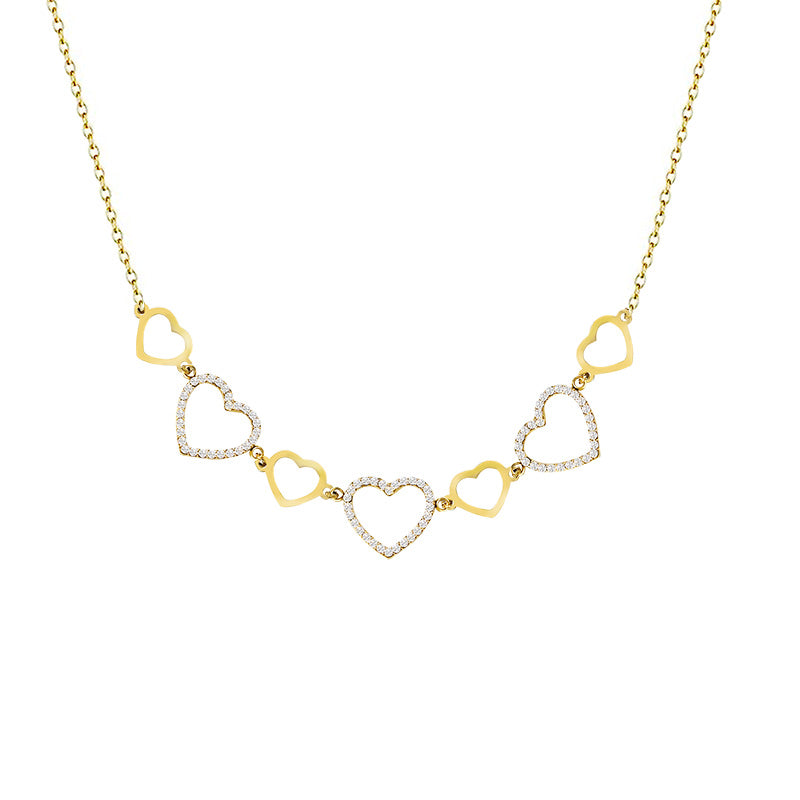 La collana Batticuore è un inno all’amore e alla luce: una catena ricca di piccoli cuori in strass che riflettono la luce ad ogni movimento, per un look romantico e brillante. Disponibile in oro giallo e in silver.