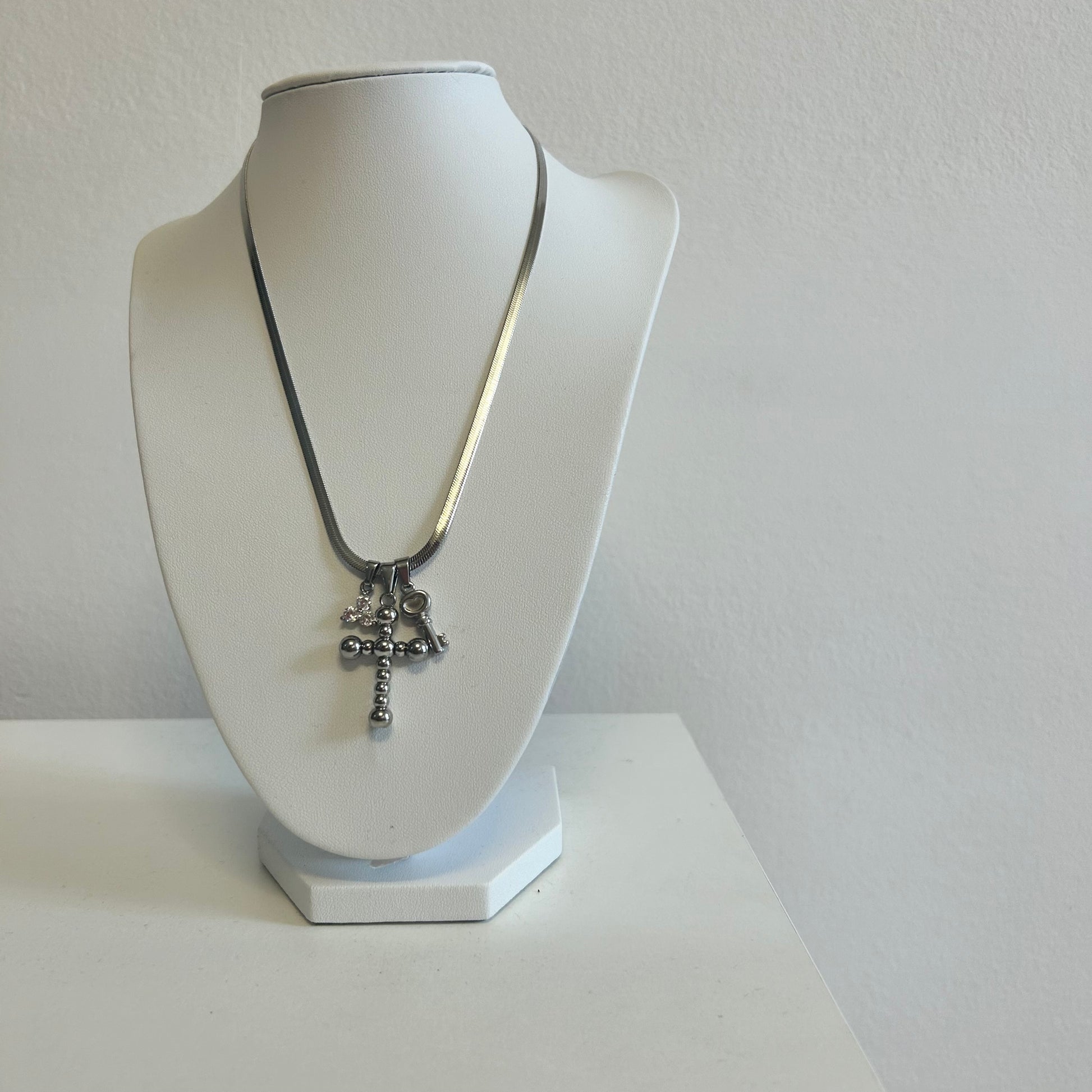 I ciondoli sono tre: Croce pallini grande, chiave silver e punto luce a tre elementi.