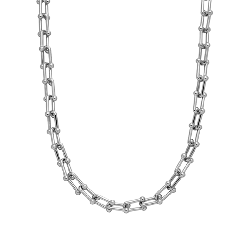Chunky Link è una collana a maglia larga con forma a ferro di cavallo, disponibile sia in gold che in silver. Il suo spessore di 7 mm la rende perfetta per aggiungere carattere a qualsiasi outfit, da sola o in combinazione con altri gioielli.