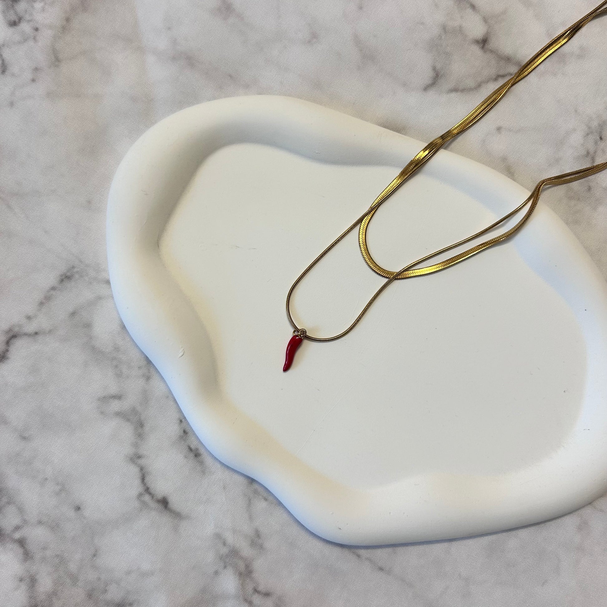 Collana doppia, composta da uno snake rotondo ed uno piatto, con ciondolo cornetto.