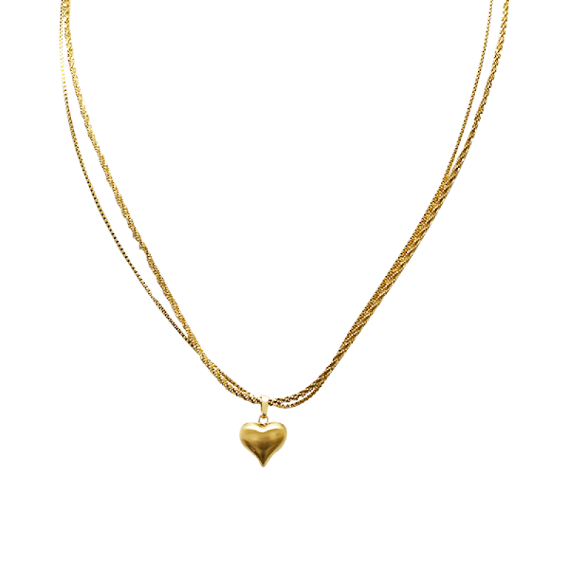 Heartline è una collana a doppio filo con un ciondolo a forma di cuore dalle dimensioni perfette per farsi notare con delicatezza.