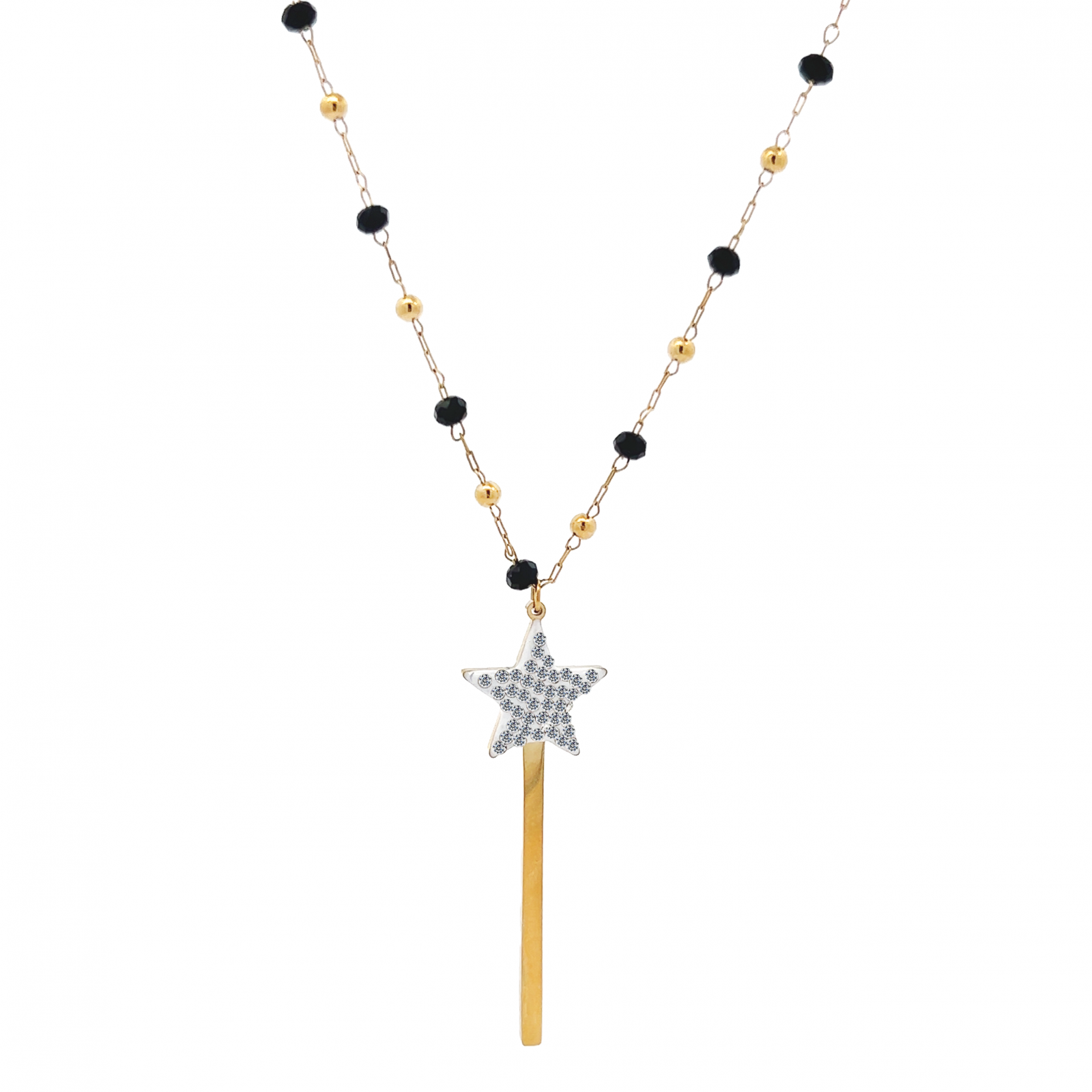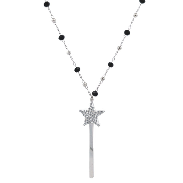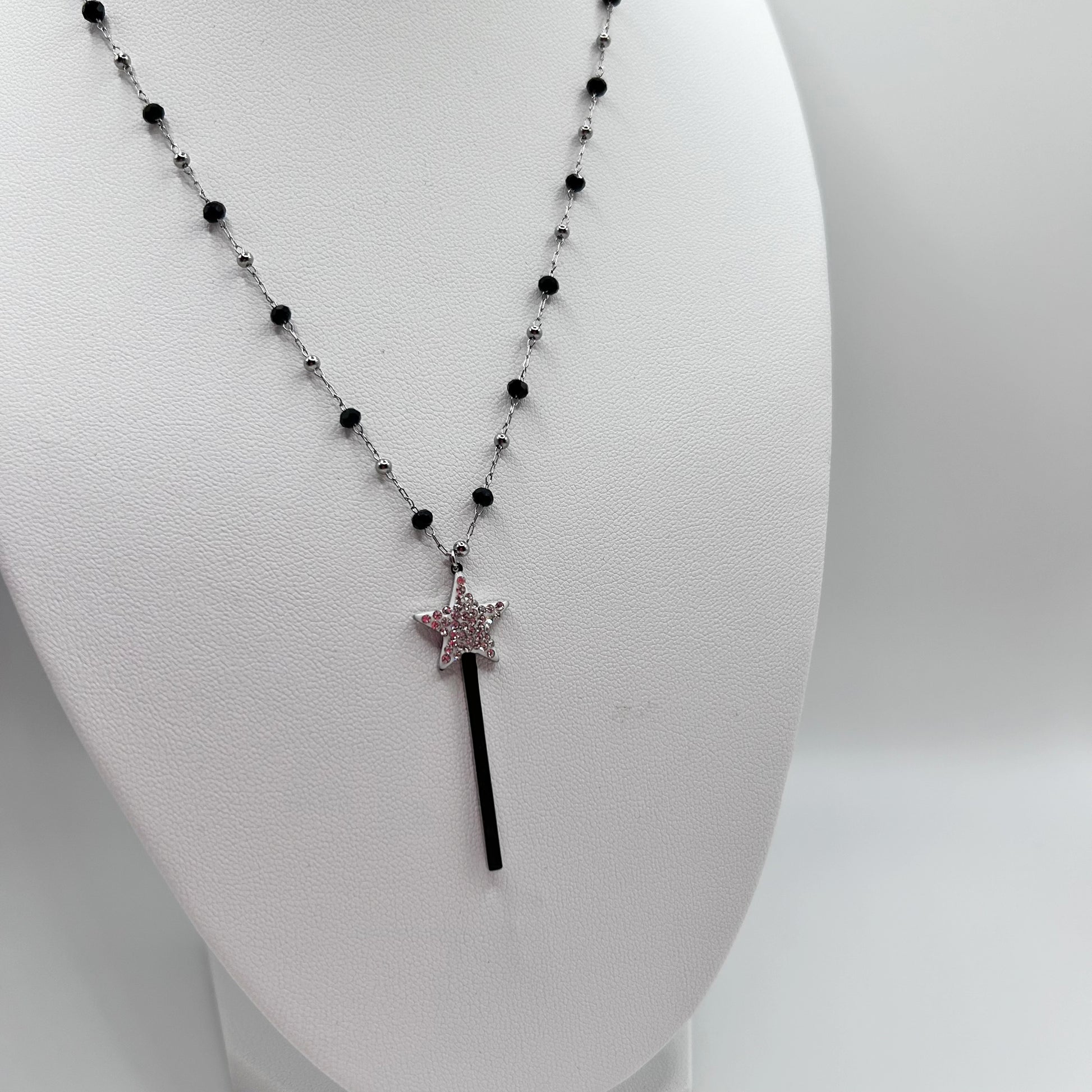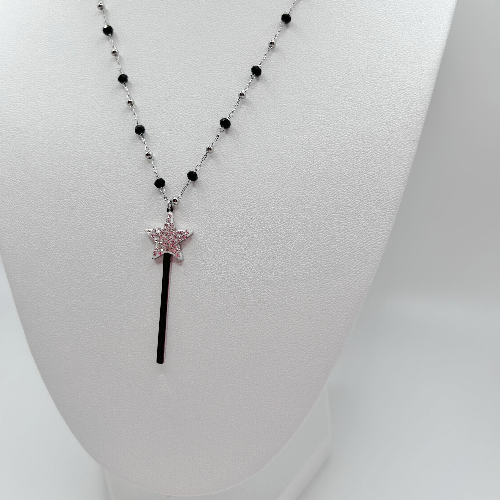 Collana MAGIC in catena classica con perline SILVER e CRISTALLI NERI.