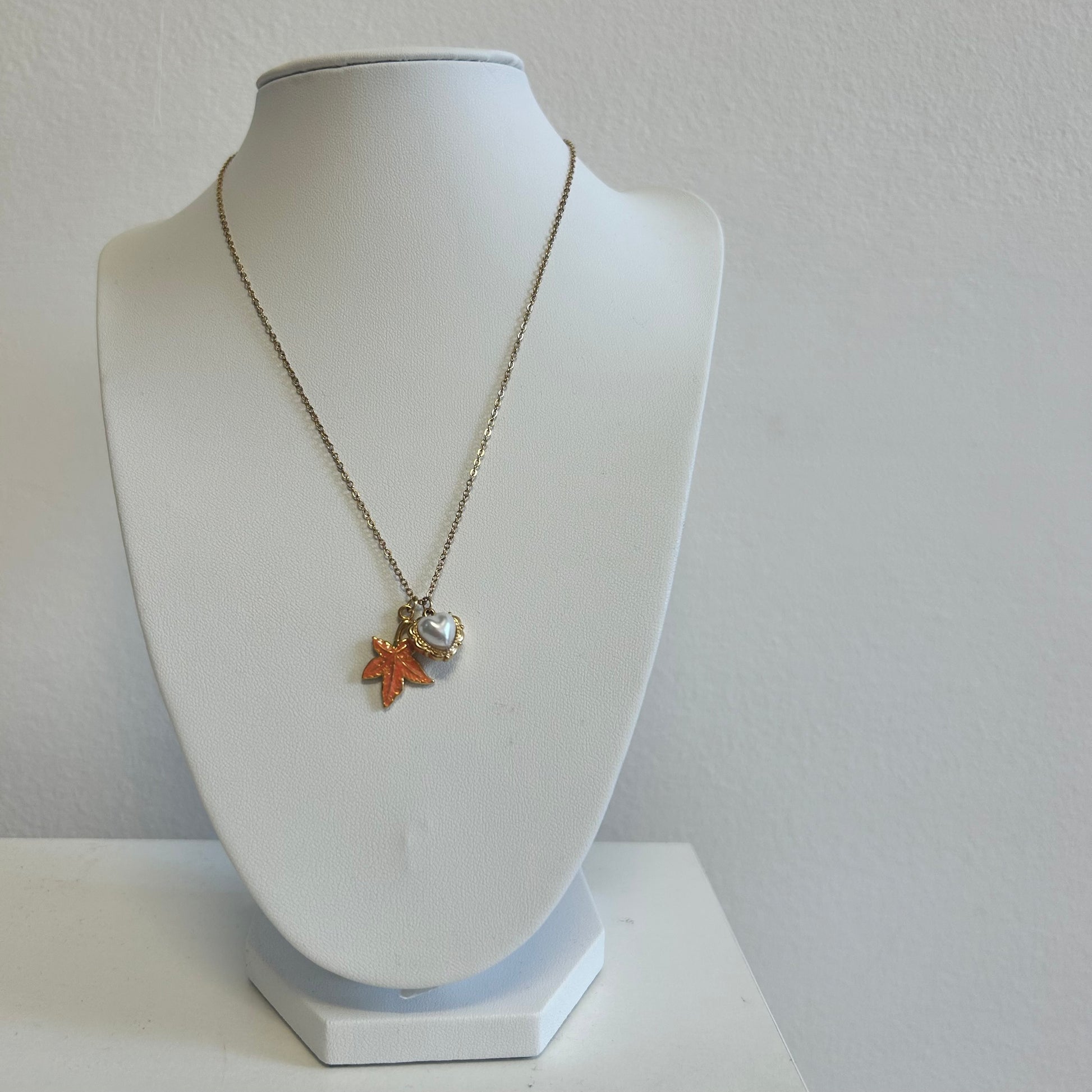 I ciondoli sono due: cuore di perla e foglia d'autunno.
