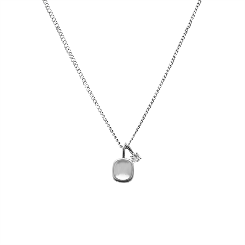 Soft Cube è una collana in catena classica disponibile in silver e gold, con un ciondolo a forma di cubetto bombato opaco e un piccolo punto luce bianco da 4 mm. La forma geometrica si ammorbidisce con linee curve e finitura satinata, per un look sobrio ma ricercato.