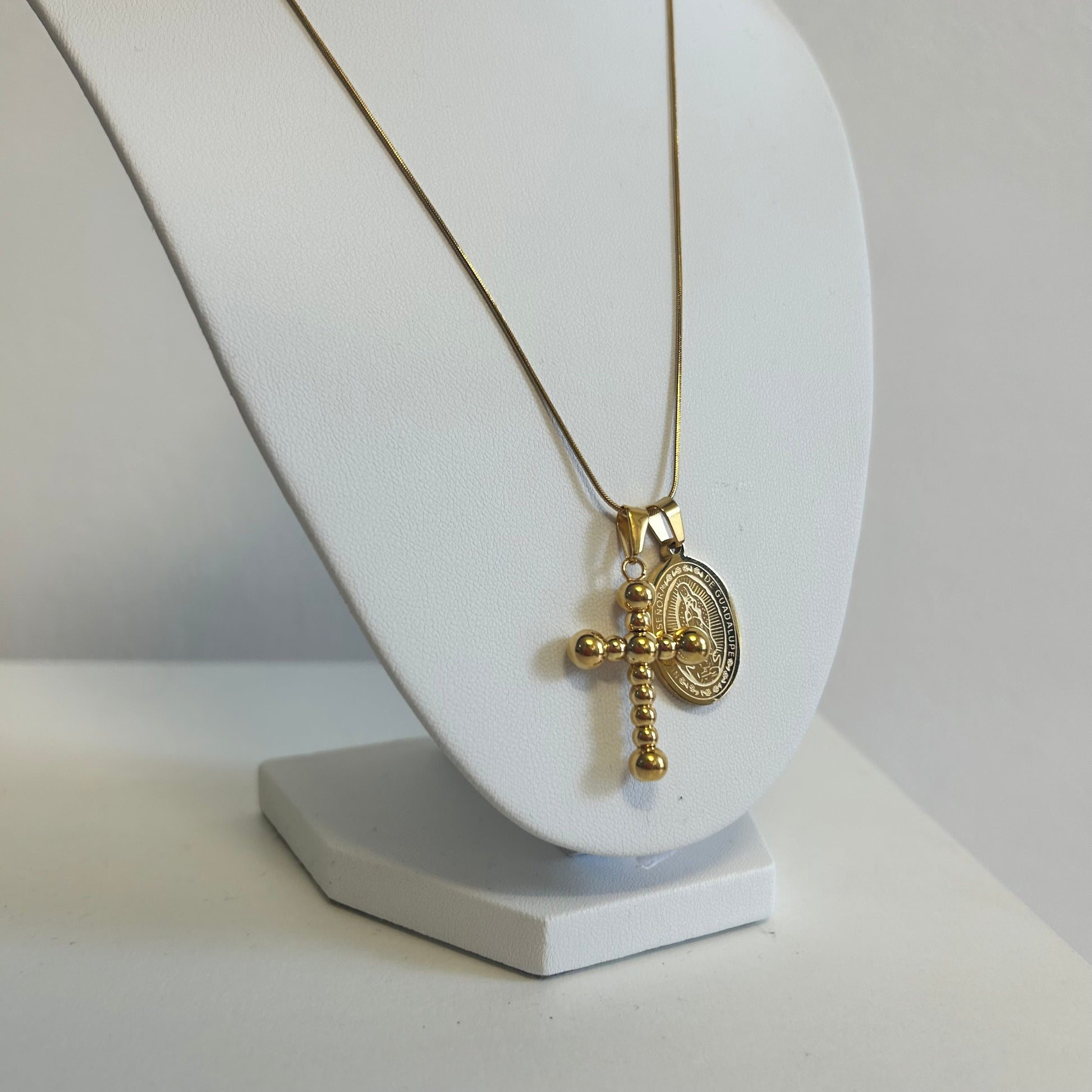 I ciondoli sono due: Croce a pallini e medaglia "medium" Madonnina.
