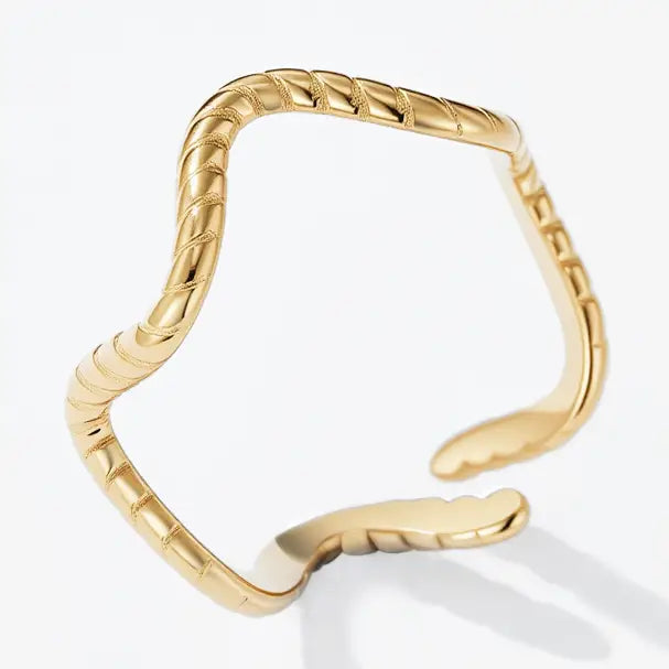 Linee fluide e texture incisa: l’anello Wave è una fedina ondulata che aggiunge movimento e carattere al tuo look. Perfetto da indossare tutti i giorni o mixare con altri anelli per un effetto unico.
