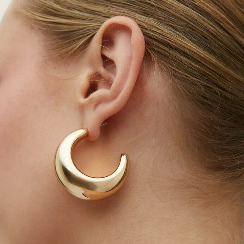 Orecchini maxi a forma di luna bombata, perfetti per chi non ha paura di farsi notare.