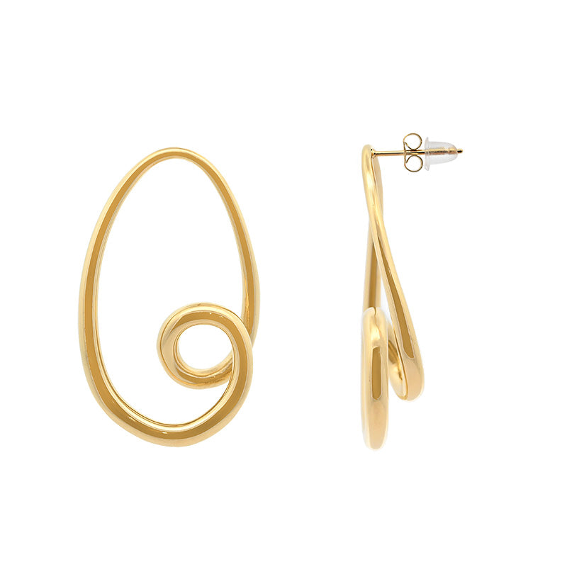 Gli orecchini Flow Loop reinterpretano il classico hoop con una spirale fluida e irregolare che cattura la luce da ogni angolazione.