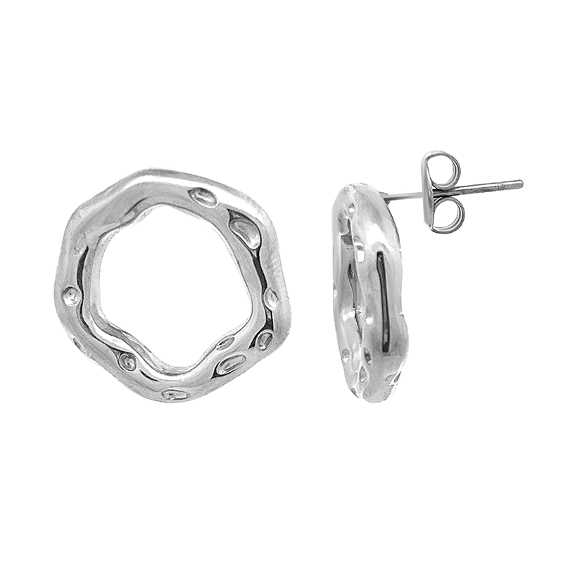 Gli orecchini Halo hanno una forma circolare cava e una superficie martellata, che riflette la luce in modo irregolare e super luminoso.