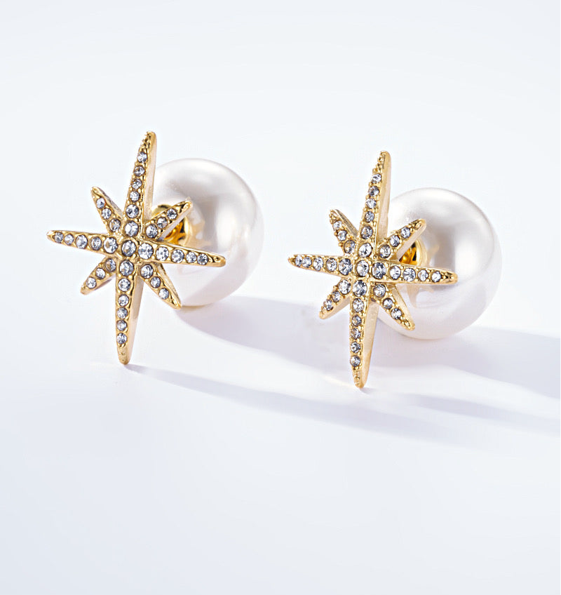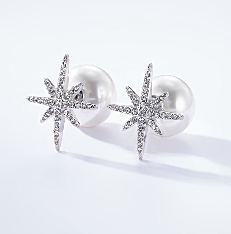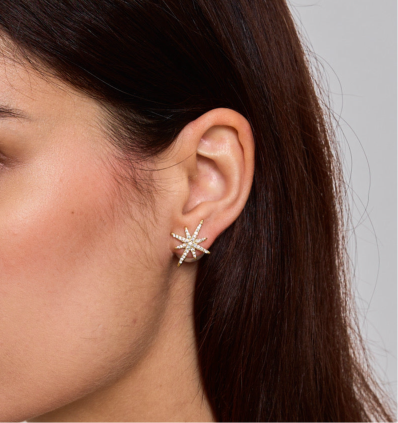 Orecchini a lobo a forma di stella polare zirconata: brillanti e raffinati, con chiusura a perla sul retro per un dettaglio unico. Disponibili sia in gold che in silver.