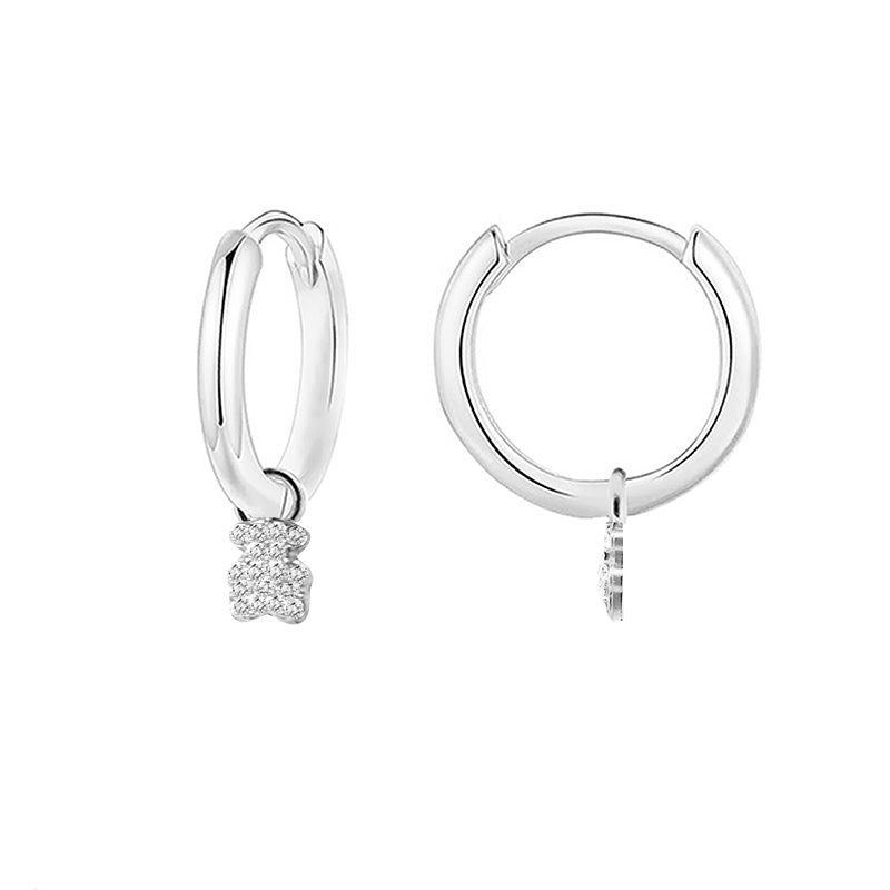 Orecchini a cerchio con pendente orsetto in strass, perfetti per aggiungere un tocco tenero e brillante a qualsiasi look.